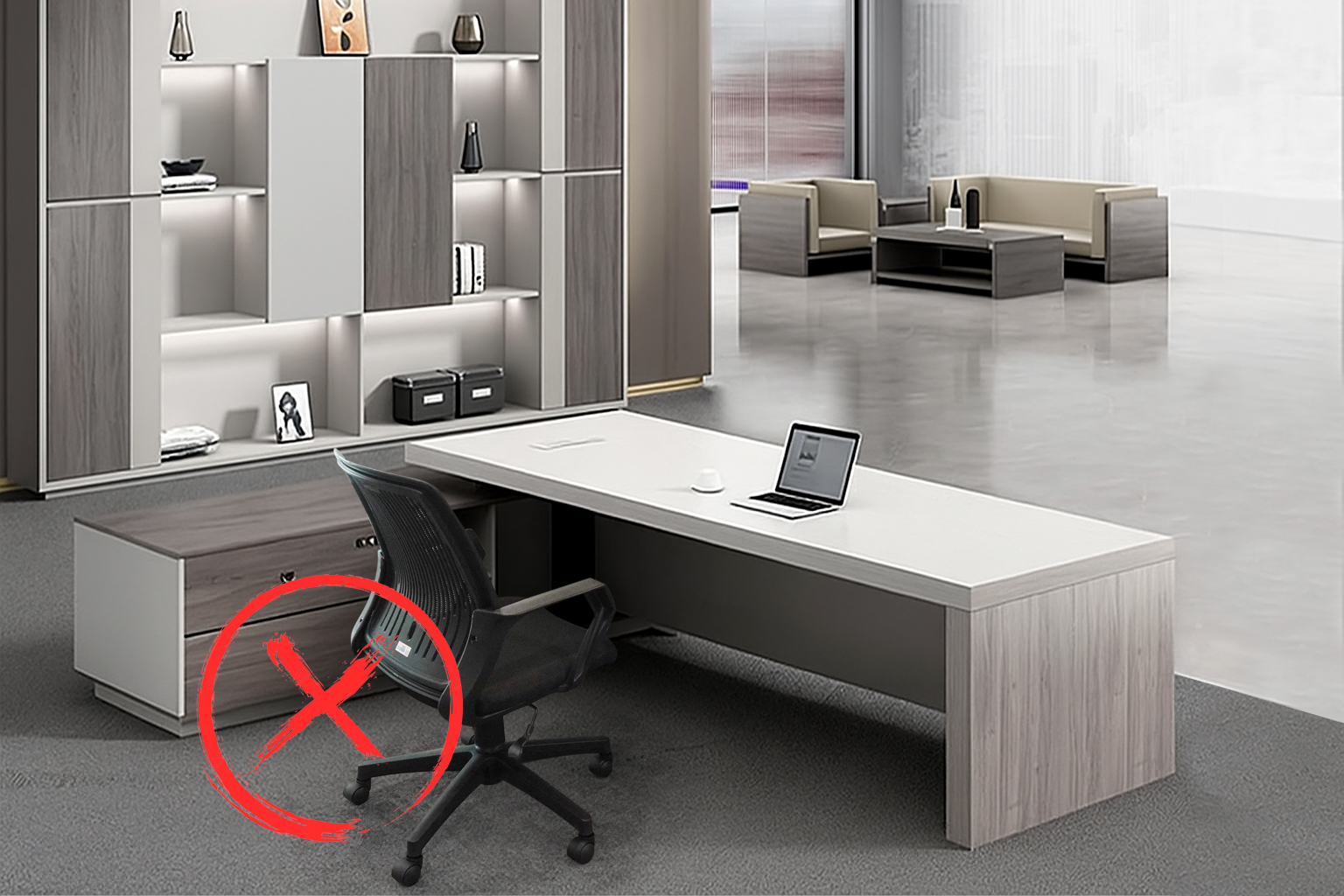 Hãy tưởng tượng: một chiếc bàn giám đốc veneer óc chó sang trọng, nhưng đi cùng lại là ghế xoay văn phòng nhân viên tiện nhưng thiếu phong thái.