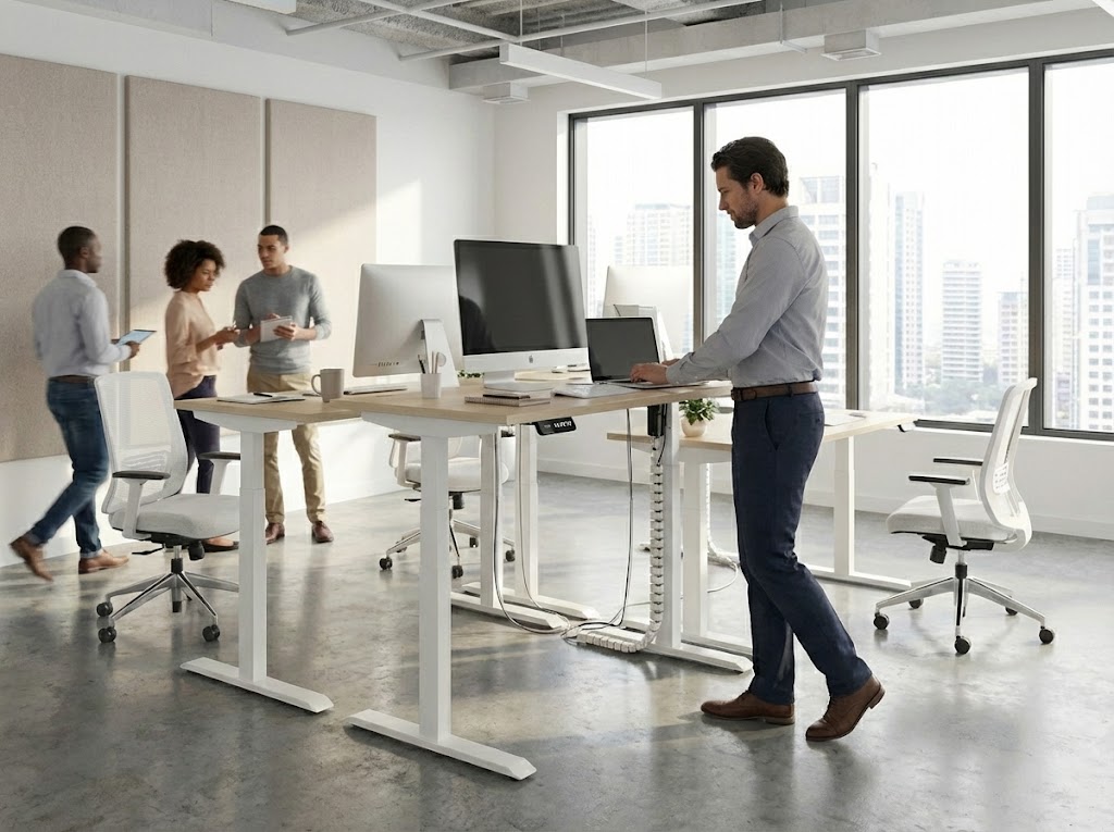 Làm thế nào để bố trí bàn làm việc nâng hạ hài hòa trong tổng thể văn phòng mà không phá vỡ ngôn ngữ thiết kế chung?