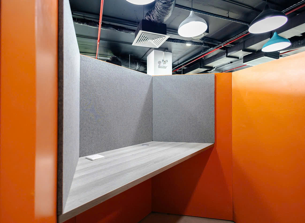 The City sử dụng dòng bàn làm việc với hệ thống vách ngăn gỗ theo màu sắc nhận diện thương hiệu giúp giữ sự tập trung và tính bảo mật cao.