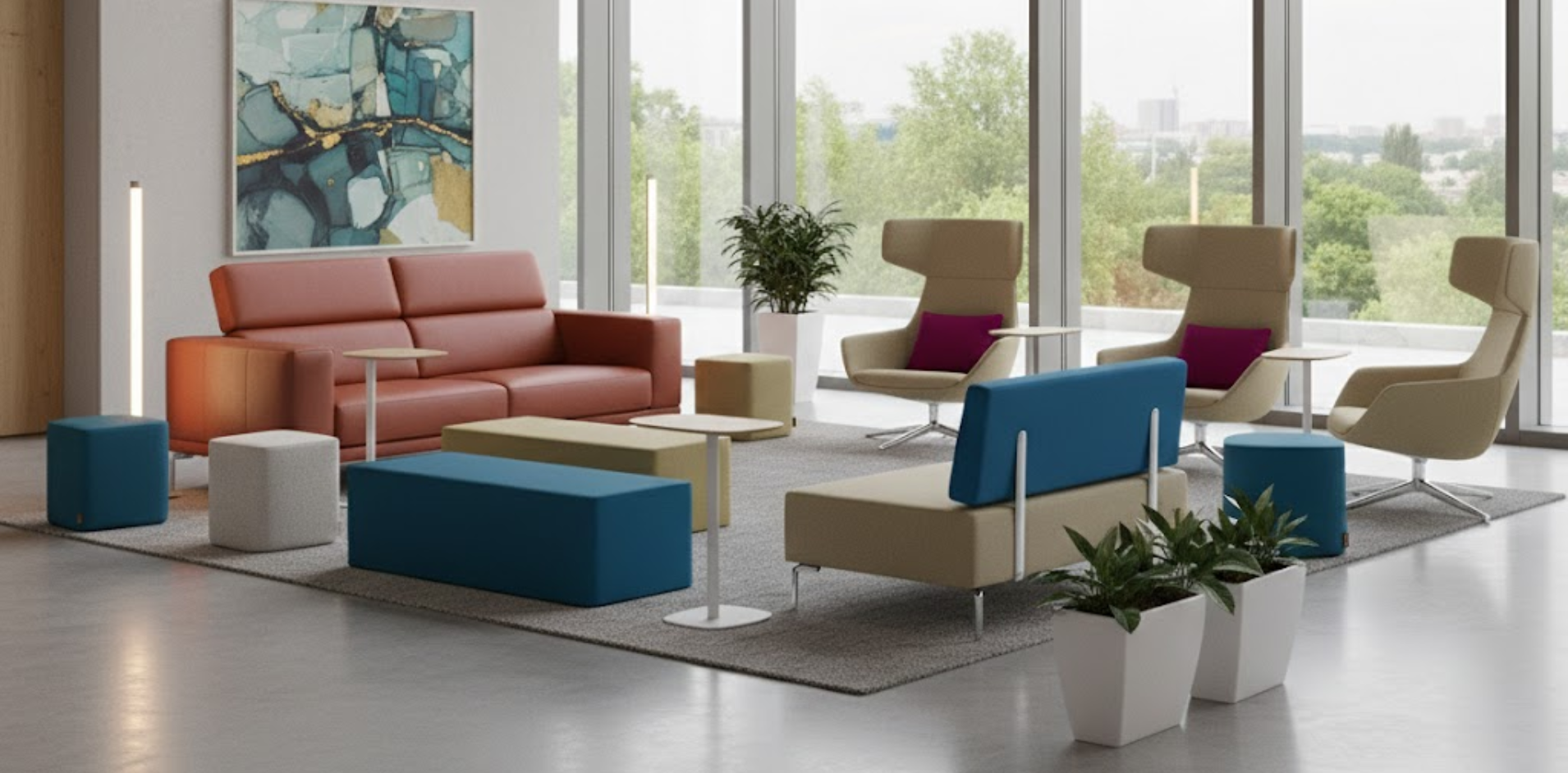 From a design perspective, selecting a reception sofa should begin with form. Bench sofas, modular sofas, and ottomans each support different layout strategies. Modular designs, in particular, allow architects to adapt configurations easily as floor plans or usage needs evolve.