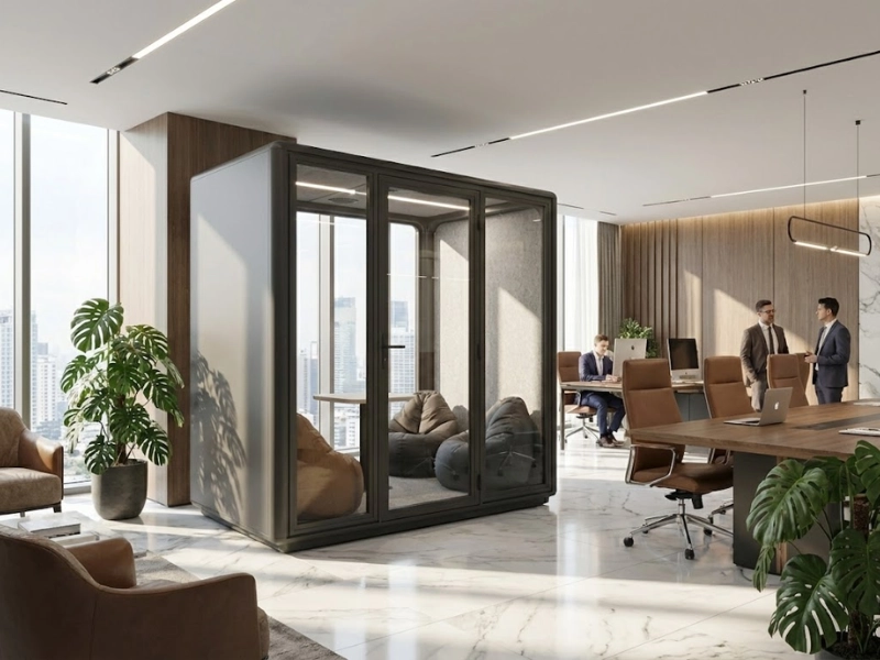 - Tính linh hoạt tuyệt đối: Bạn có thể lắp đặt một buồng họp 4 người chỉ trong vài giờ thay vì vài tuần thi công. Khi cần thay đổi layout văn phòng, bạn chỉ cần di chuyển Pod thay vì đập bỏ vách ngăn.