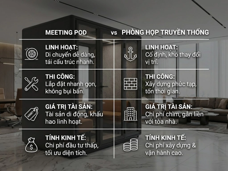 5. So sánh: Meeting Pod vs. Phòng họp truyền thống