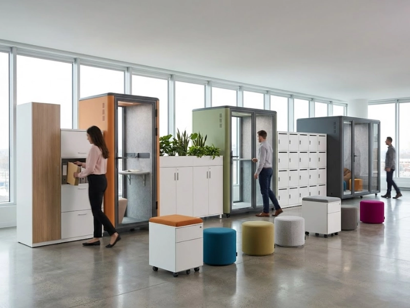 Tuy nhiên, trạm làm việc cá nhân này là một khối vật lý có kích thước đáng kể. Nếu đặt nó một cách tùy hứng, bạn sẽ vô tình tạo ra những "vật cản" khổng lồ, làm tắc nghẽn luồng giao thông (Traffic Flow) và gây rối mắt cho tổng thể không gian. Thách thức đặt ra cho các nhà quản lý và kiến trúc sư là: Làm thế nào để tích hợp thiết bị di động này vào văn phòng mà vẫn đảm bảo lối đi thông thoáng và sự kết nối liền mạch với các hệ thống nội thất văn phòng khác?